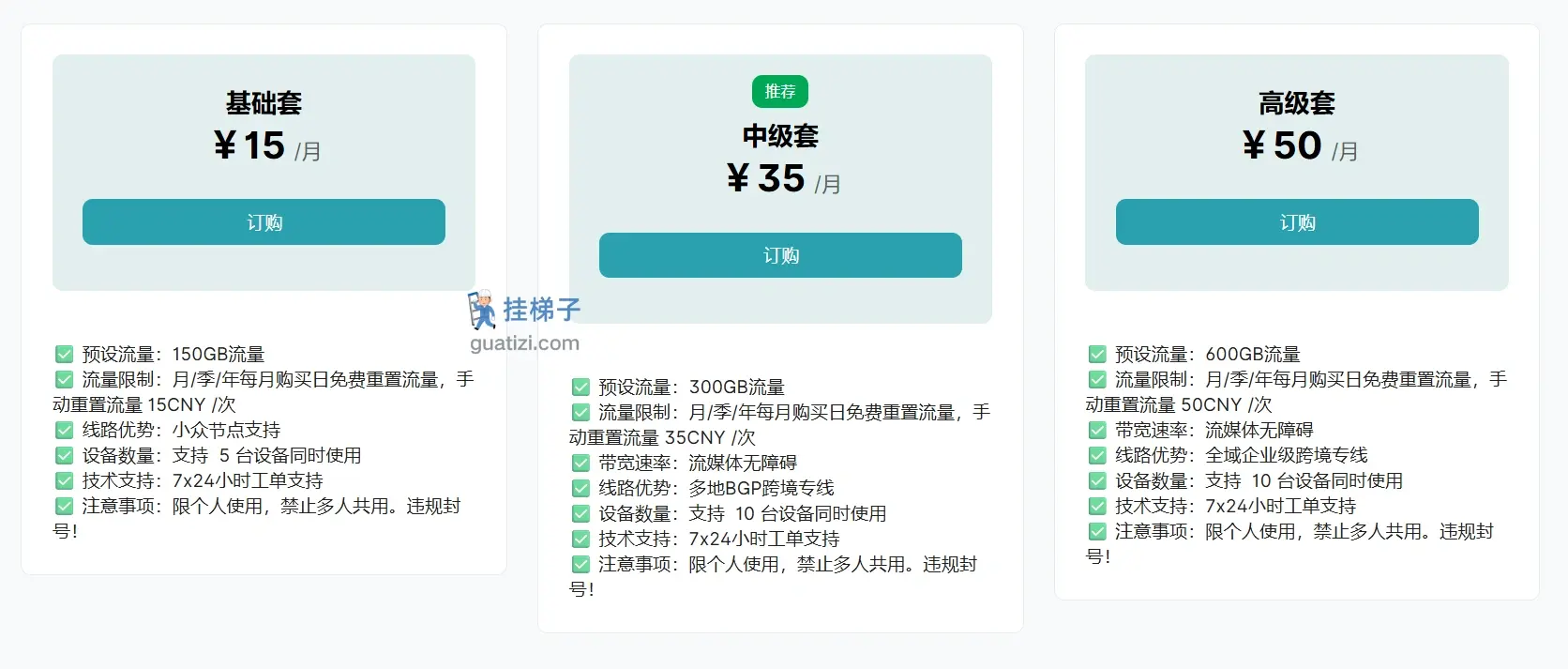 由于数字产品的特殊性,本站 不支持退款 ,一旦购买默认您知悉并同意本文内容 请正确使用科学上网(学习、娱乐、外贸及工作用途),遵守您本人所在地的法律法规 所有节点均已屏蔽反智反动等非法网站及矿池相关域名 禁止任何商业化倒卖行为,如有发现直接连坐封号处理 禁止在QQ群、微信群内推广本站或发本站网址,防止账号被墙或被封 切勿在任何地方发布分裂国家、激化民族矛盾的言论 以上限制的目的为保障全体付费用户的权益和稳定使用,请您理解